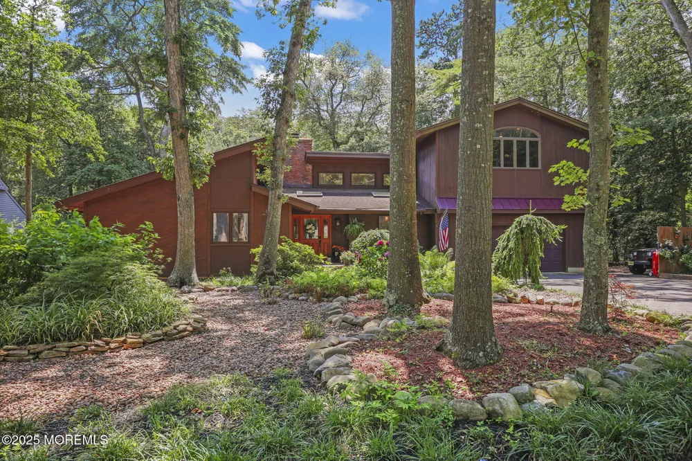 What a find! 5 bdrm 3.5 bth Contemporary/Chalet on one of the best lots in Brielle. This home is the last home on William Dr. in its own private enclave with a Unique design and custom built by these original owners. Wide plank wood flooring thoroughout most of the first floor. This open concept home is rarely seen today. The Family room/Dining room/Kitchen seem to blend together seamlessly with a rustic feel and style and offers radiant heat throughout those 3 rooms. There is abundant access from these areas to the expansive deck with outdoor kit. and prep area. There are 2 primary suites on the first floor w/ baths and bonus bdrm/nursery/ which is currently a closet. The 2nd floor offers a tremendous great room and bath w/ a 5th bdrm or office. The lot can easily accommodate a pool etc.